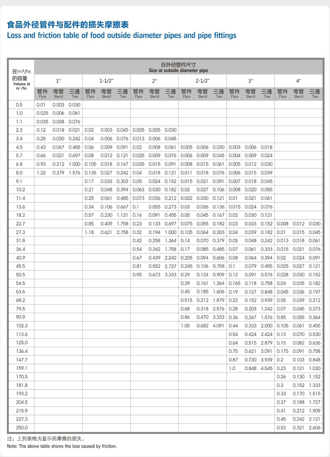 食品外徑管件與配件的損失摩擦表 返回