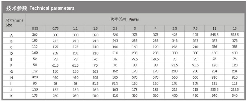 3、優越的電氣性能、低噪音、低振動,電機的標準設計防護等級為IP55,絕緣等級為F級。